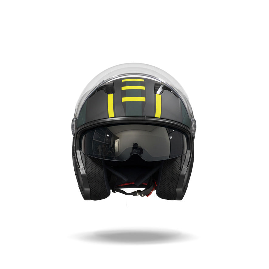 Pensado para quienes ven la moto como parte de su identidad, el casco semi integral une seguridad, confort y estilo en un diseño compacto y equilibrado. Su doble visor —uno transparente y otro oscuro— ofrece protección total ante el sol y la noche, brindando una visión clara en cualquier recorrido.